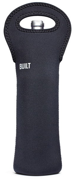 Made of elastic neoprene(the wetsuit material). Insulates one 750ml or one liter bottles. Stain resistant and machine washable.