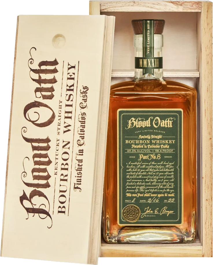 "A masterful union of three well-bred bourbons. One, a 14-year ryed bourbon. Two, an 11-year ryed bourbon. And three, and 8-year ryed bourbon finished in Calvados casks from the Normandy region of France to impart slight apple on the nose with hints of vanilla and cinnamon. With each sip, feel transported to Northern France by way of Kentucky." Producer Notes