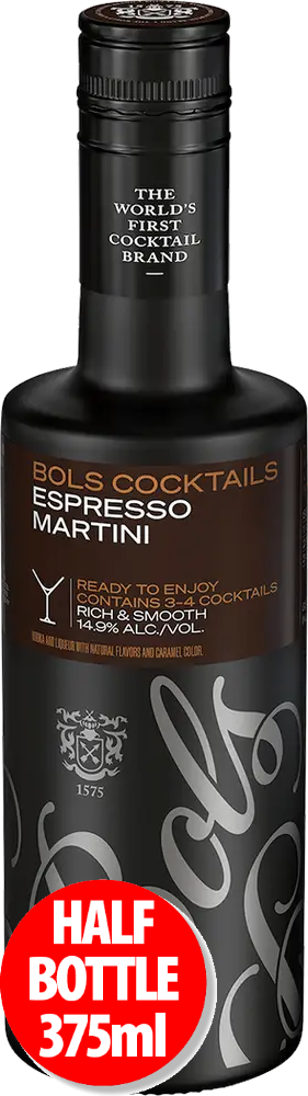 "Rich and robust Classic Espresso Martini crafted with Bols Coffee Liqueur, Premium Vodka and a shot of espresso coffee. Ready to enjoy, just chill, pour and add your favorite garnish. Serves 3-4 cocktails. Gluten Free." Tasting Notes