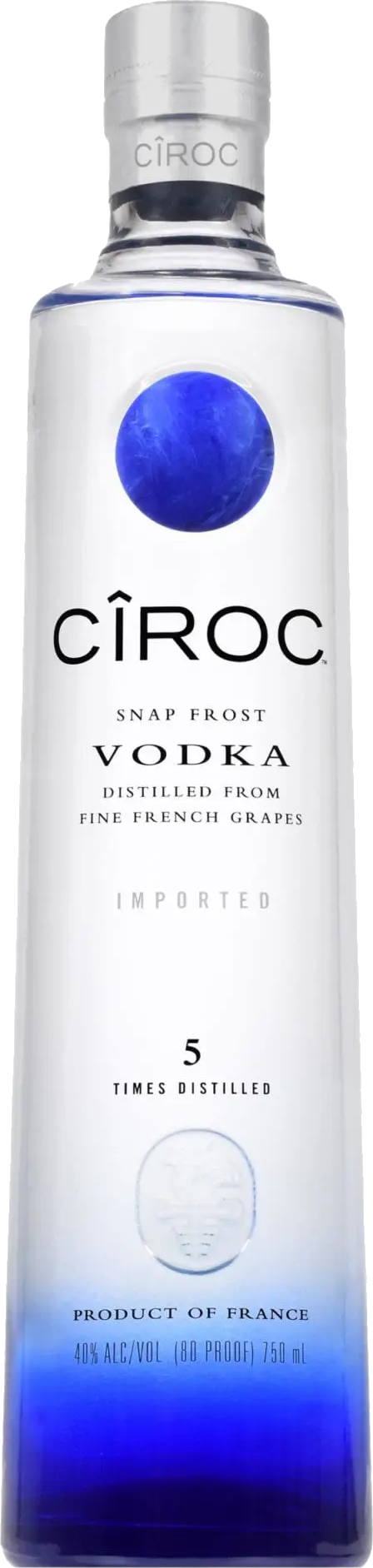 "Distilled from fine French grapes for an exquisitely smooth, fresh vodka experience. The essence of Ciroc Ultra- Premium Vodka comes from fine French grapes, which are distilled a fifth time at the historic Distillerie de Maison Villevert - Chevanceaux in the South of France. Ciroc Ultra-Premium Vodka is gluten free." Tasting Notes