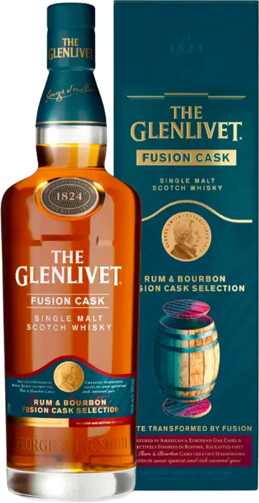 "Discover The Glenlivet Rum & Bourbon Fusion Cask Selection, and experience taste transformed by fusion. Our experts finish a selected portion of the whisky in bespoke casks, made from hand-selected first fill rum and bourbon barrels that have been expertly dismantled and reassembled, for a luxurious new taste experience." Producer Notes