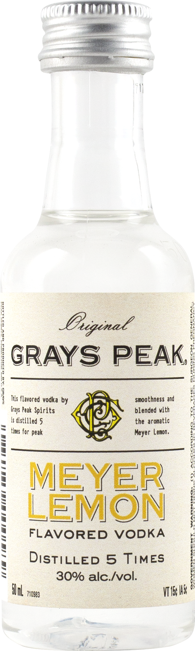 "Small batch flavored vodka distilled 5 times for peak smoothness. Blended with the aromatic Meyer lemon. Zesty and alive. Add equal parts 7-Up and orange juice for a Fruit Cocktail Delight." Tasting Notes
