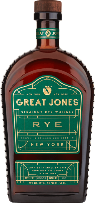 "Great Jones Whiskey is distilled from 100% Rye grain, sourced entirely from farms in New York State and aged in American oak. The result is a whiskey complex enough to enjoy neat, yet perfect for cocktails. Layered with notes of vanilla, dried fruit from the orchard, and iconic rye pepper, it's a spicy love letter to our state's hardiest grain." Distiller's Notes