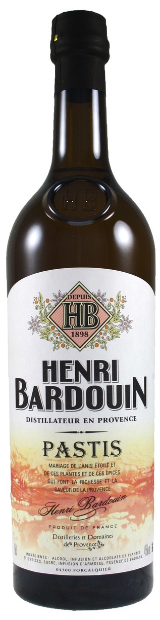 "A traditional anise-flavored French liqueur, hails from the Distilleries et Domaines de Provence in Haute Provence, France. Made with the best natural herbs and spices from Provence, this Pastis exemplifies the richness and flavor of the region...The following botanicals contribute to its complex flavor: Star Anise, Cinnamon, Black Pepper, Tonka Bean, Nutmeg, Sage, White Pepper, Cardamom, Clove, Centaury, Artemisia, and Melequeta Pepper. Enjoy H.B. Pastis as a tall drink. Diluting it properly releases all the flavor and aroma in H.B.Pastis." Tasting Notes