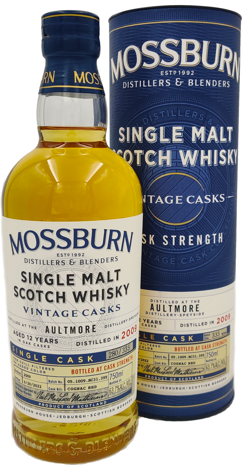 "There was no doubt... this Single Malt had a backbone that could handle sherry casks. But it was also true that the floral notes seemed to lend themselves to something a bit different and so Cognac had enough intensity to tame its power and enough subtlety to complement the floral fruitness. On the palate, peaty with a complex estery note: Fragrant aromas of mango, citrus and vanilla leading to flavors of peaches and raisins. Finishing off with honey and juniper berries." Distiller's Notes