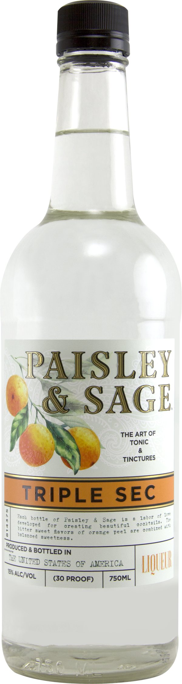 "With a sweet citrus aroma, Paisley & Sage Triple Sec is an orange-flavored liqueur made from the dried peels of bitter and sweet oranges. Its refined flavor makes it highly mixable, adding sweetness and fragrance to both classic and creative cocktails. Try Paisley & Sage Triple Sec in your next margarita, kamikaze, Long Island iced tea, sidecar or cosmopolitan, among many others." Tasting Notes