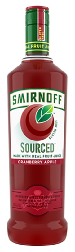 "Made with real fruit juice and is Gluten Free. Smirnoff Sourced Cranberry Apple takes the classic vodka cranberry and adds a little twist. If you don't want a flavor that is too sweet try this one. You can mix with ginger ale or create a super fruity screwdriver by adding some orange juice." Tasting Notes