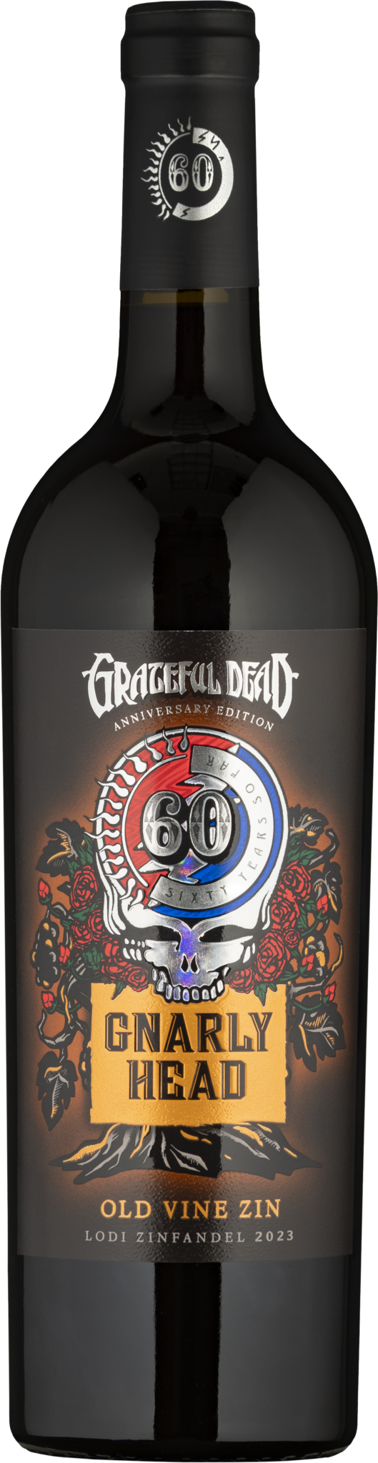 "A brand new, Limited Edition Grateful Dead wine. A rich, spicy Old Vine Zinfandel, sourced from 35-to-80-year-old-vines in Gnarly Head's home appellation of Lodi, California. Gnarly Head was launched in 2005 and takes its name from the gnarled free standing head trained vines found in the Lodi region of California, some of which were planted over a century ago. Pair with a hearty steak and an old vinyl record" Tasting Notes