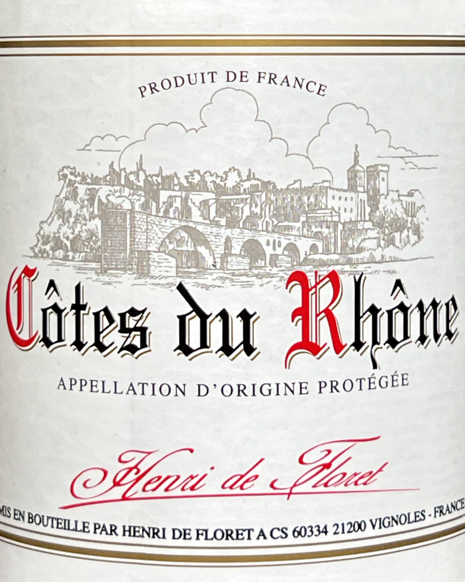 "Henri de Floret's 2021 Cotes du Rhone presents an inviting ruby red color and a bouquet of dark fruit and herbs. The palate is rich with blackberry, plum and subtle pepper notes, finishing with a pleasant acidity. This wine is a great value for its quality and complexity." Tasting Notes