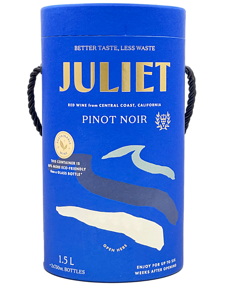 "Classic Pinot Noir aromas of red cherry, raspberry, and savory baking spice are met with a fresh, delicate, and approachable mouthfeel that compels a second sip. Each Juliet Eco-Magnum contains two bottles' worth of wine that stays fresh for six weeks once opened." Winemaker's Notes Double Gold, SF Chronicle Wine Competition